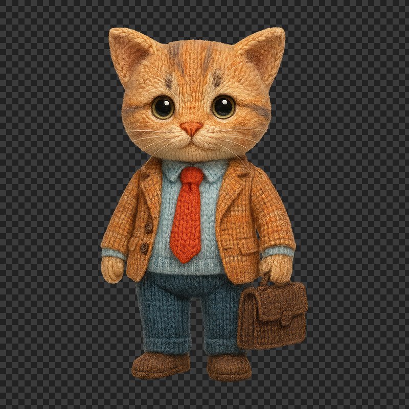 PNG Cute knitted cat businessman illustration. https://www.rawpixel.com/image/24478263/png-cute-knitted-cat-businessman-illustrationView license