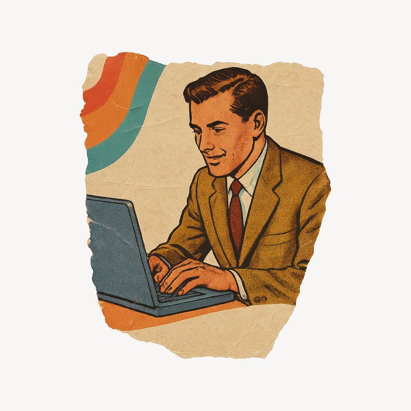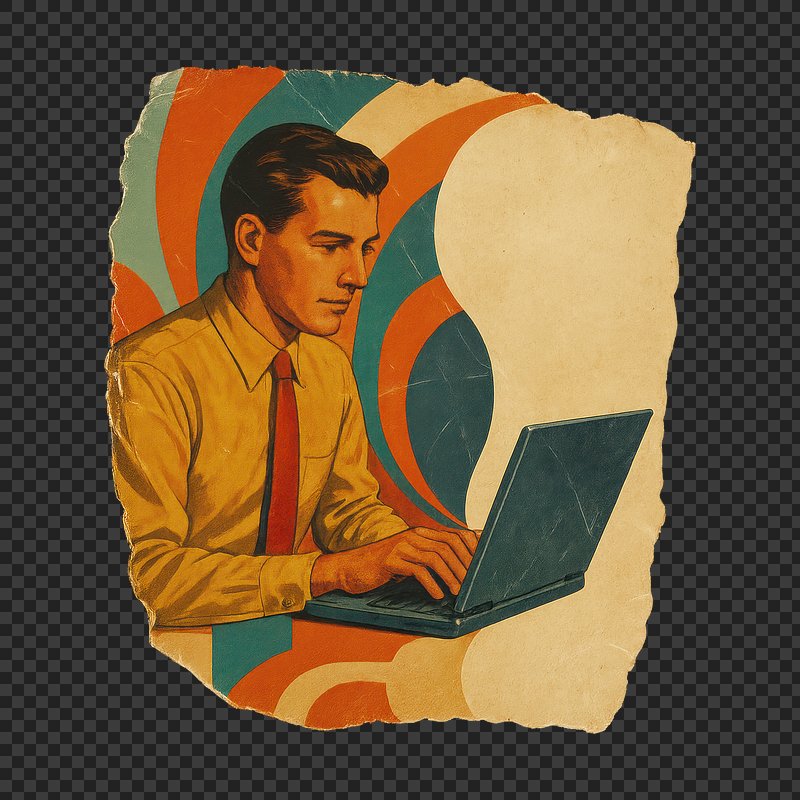 PNG Retro businessman using laptop https://www.rawpixel.com/image/24372090/png-retro-businessman-using-laptopView license