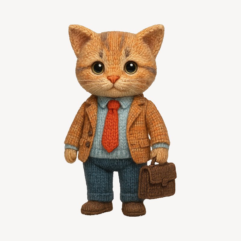Cute knitted cat businessman illustration. https://www.rawpixel.com/image/24657062/cute-knitted-cat-businessman-illustrationView license