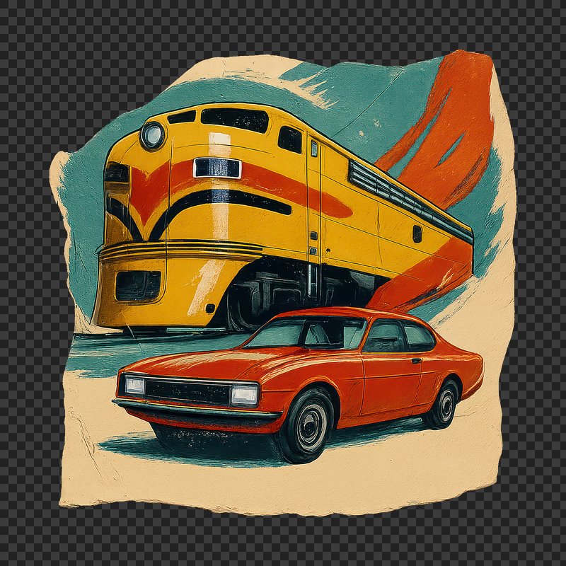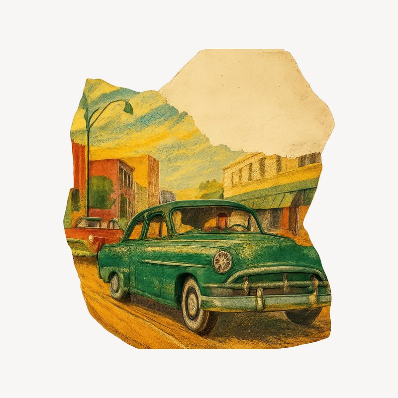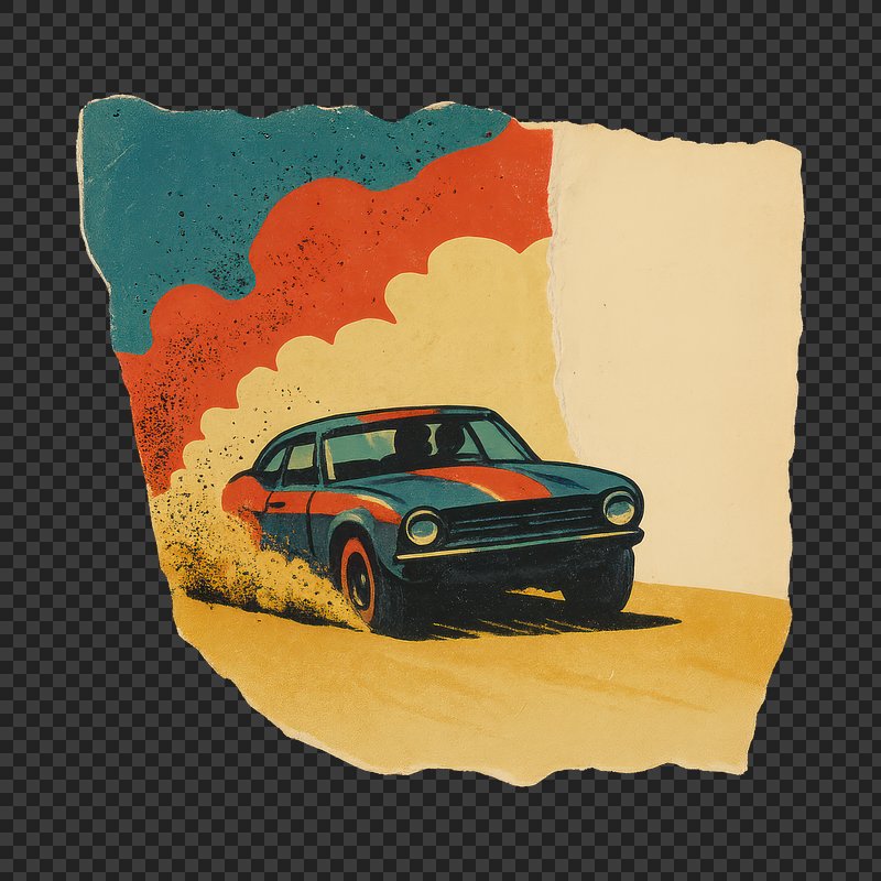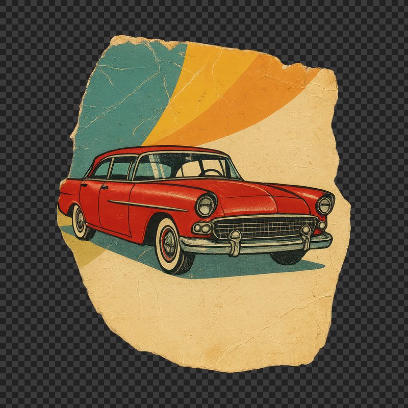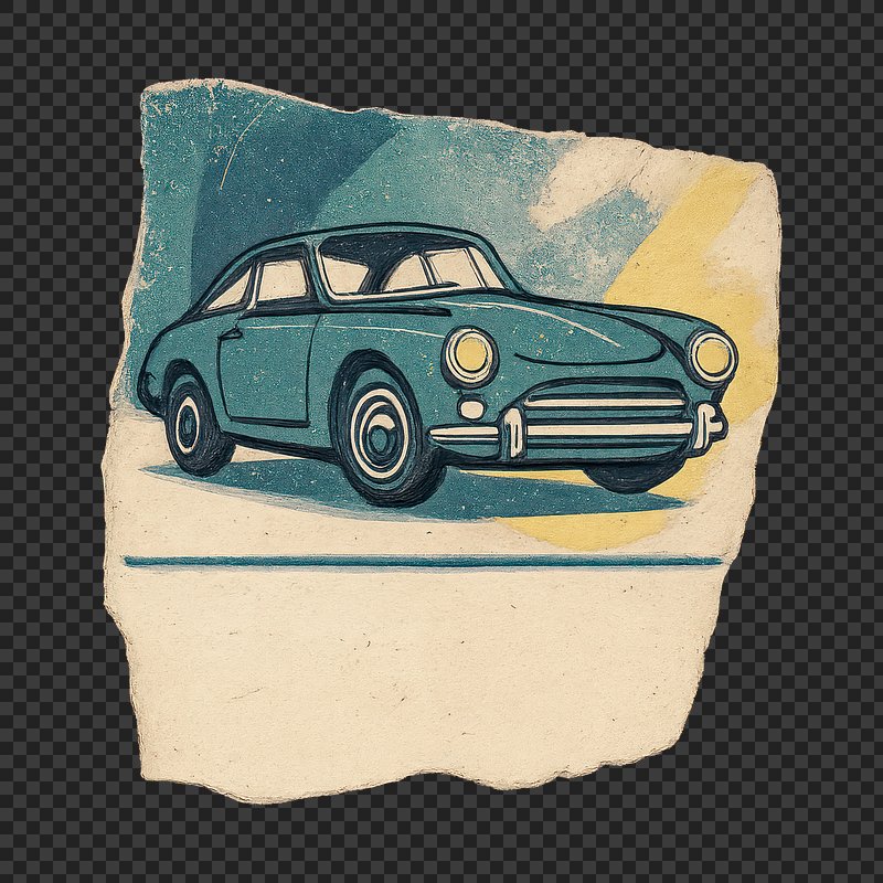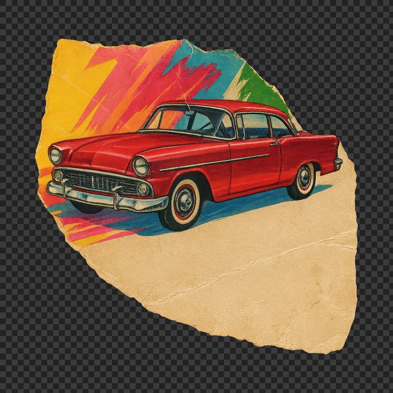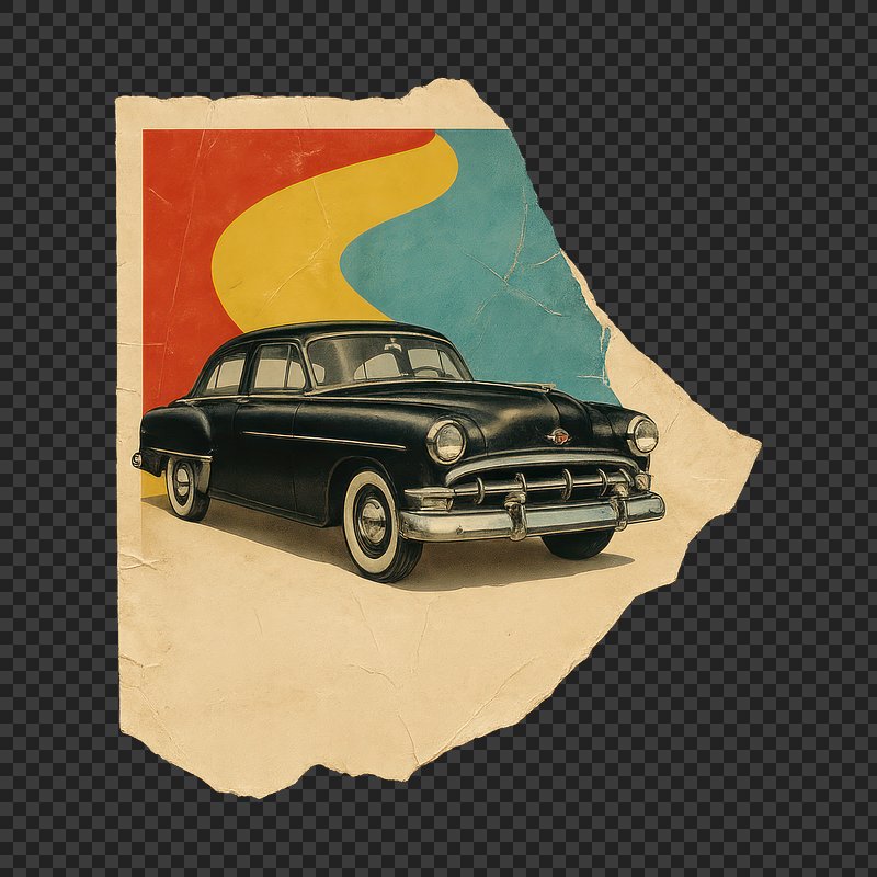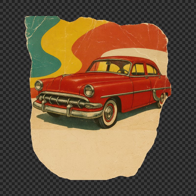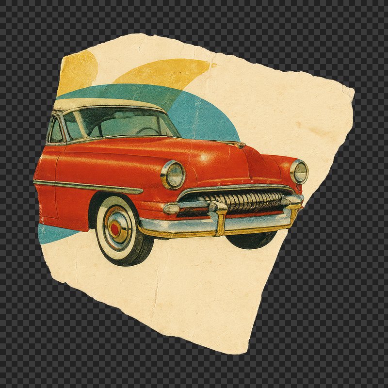PNG Vintage car collage art piece. https://www.rawpixel.com/image/24399974/png-vintage-car-collage-art-pieceView license