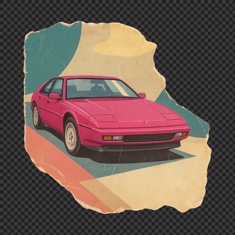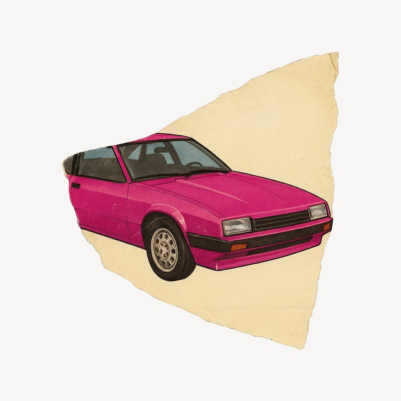 Retro pink car collage art https://www.rawpixel.com/image/24564657/retro-pink-car-collage-artView license