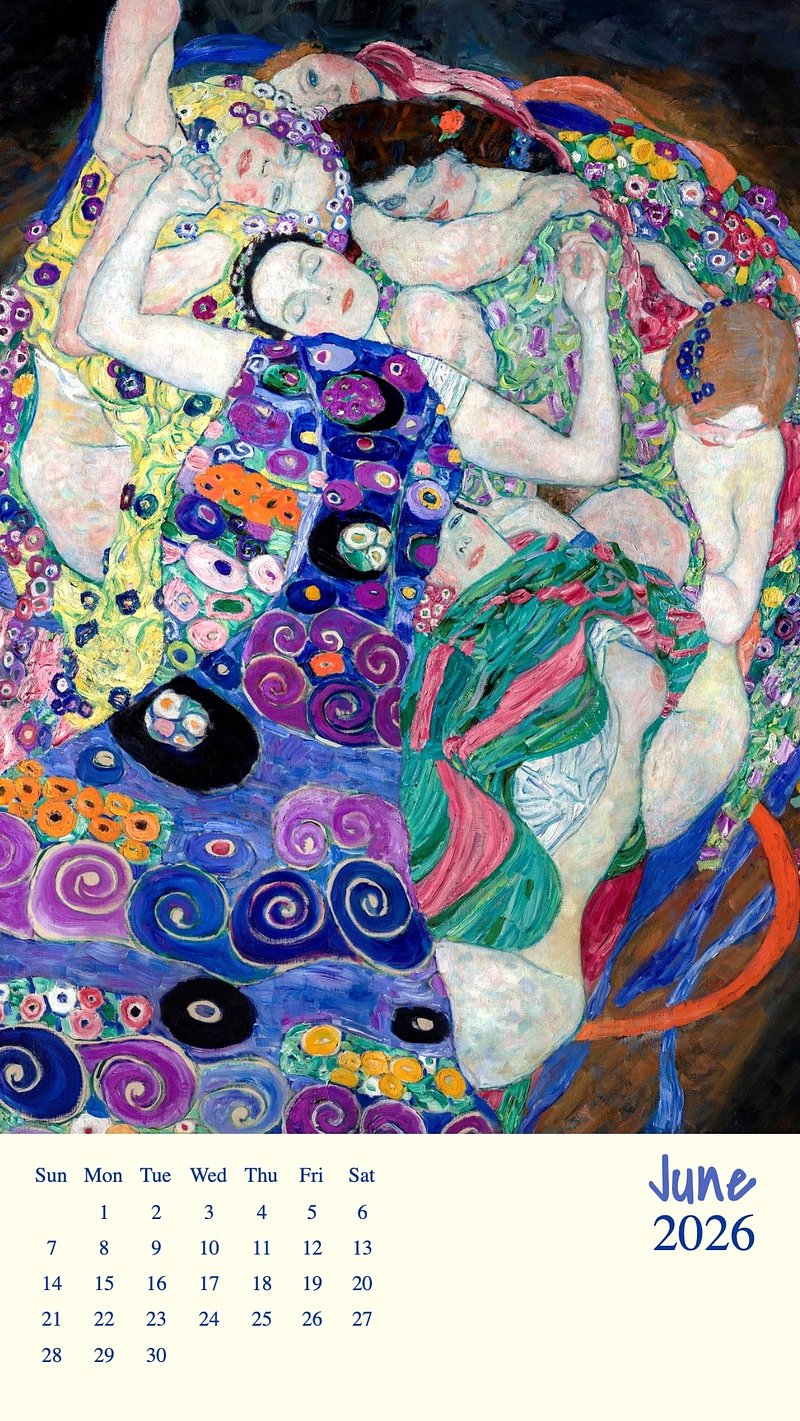 June 2026 art calendar mobile wallpaper, original artwork by Gustav Klimt https://www.rawpixel.com/image/24703301/june-2026-art-calendar-mobile-wallpaper-original-artwork-gustav-klimtView license
