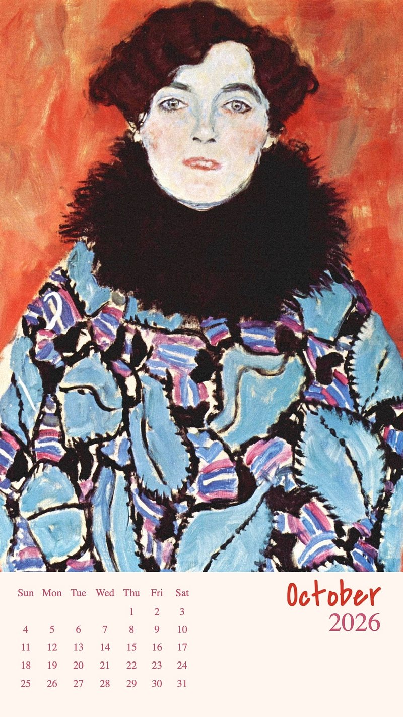 October 2026 art calendar mobile wallpaper, original artwork by Gustav Klimt https://www.rawpixel.com/image/24703303/october-2026-art-calendar-mobile-wallpaper-original-artwork-gustav-klimtView license