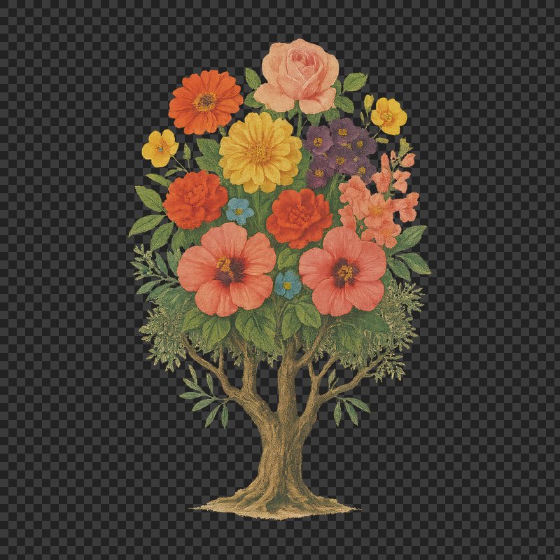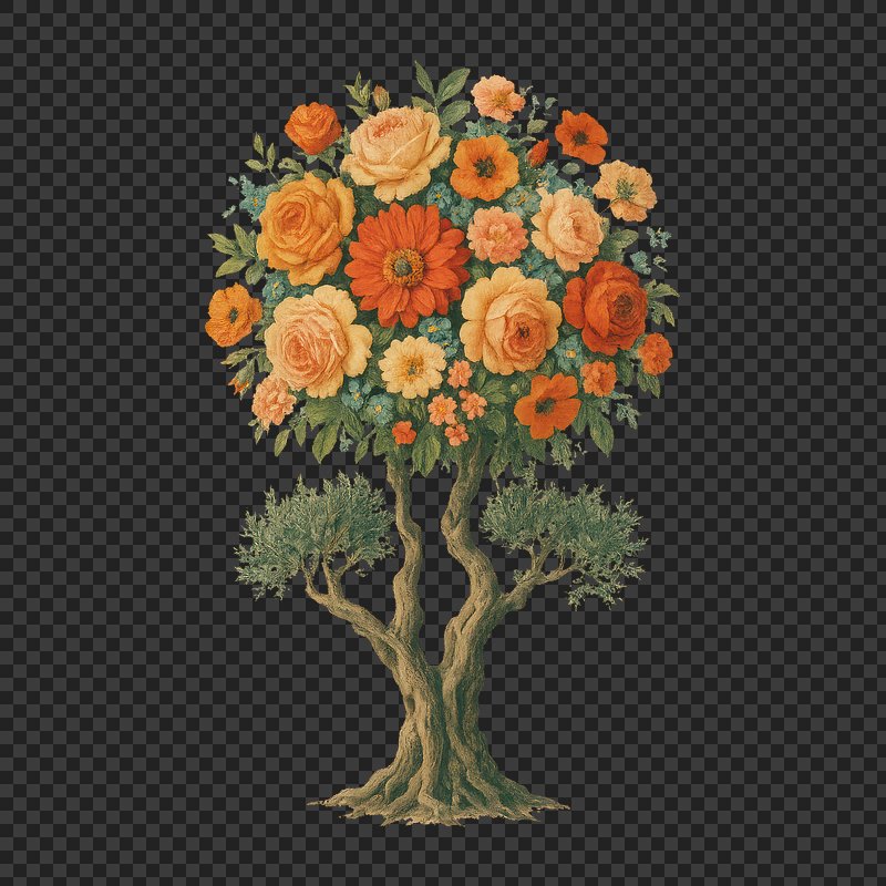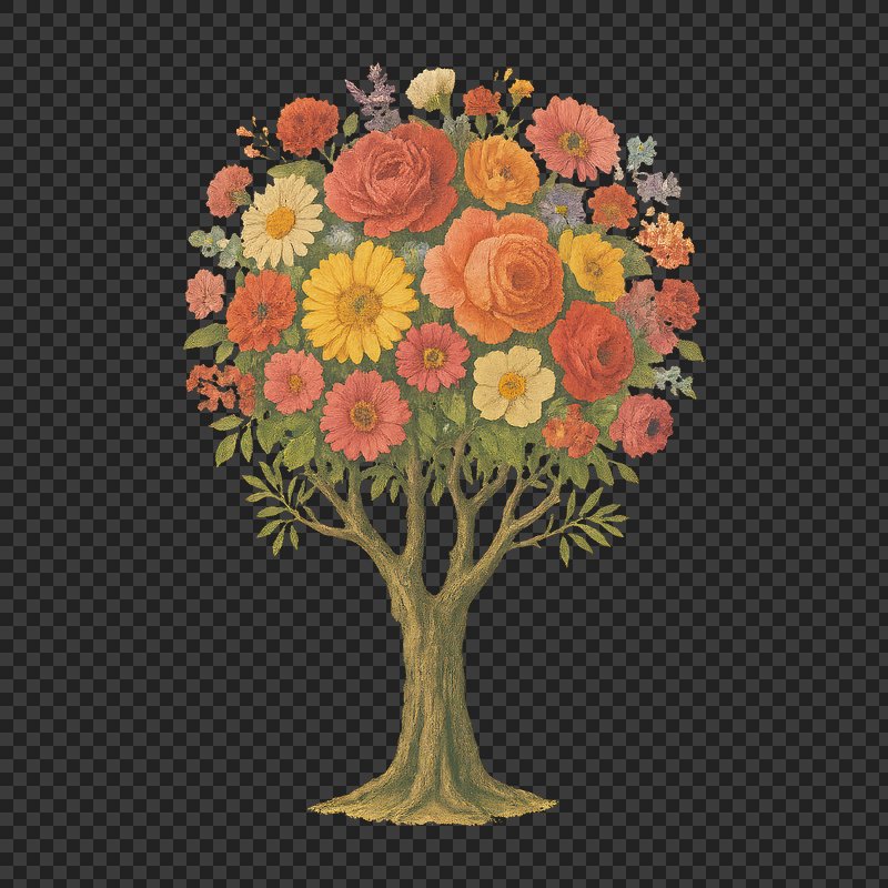 PNG Floral tree with vibrant blossoms. https://www.rawpixel.com/image/22630756/png-floral-tree-with-vibrant-blossomsView license