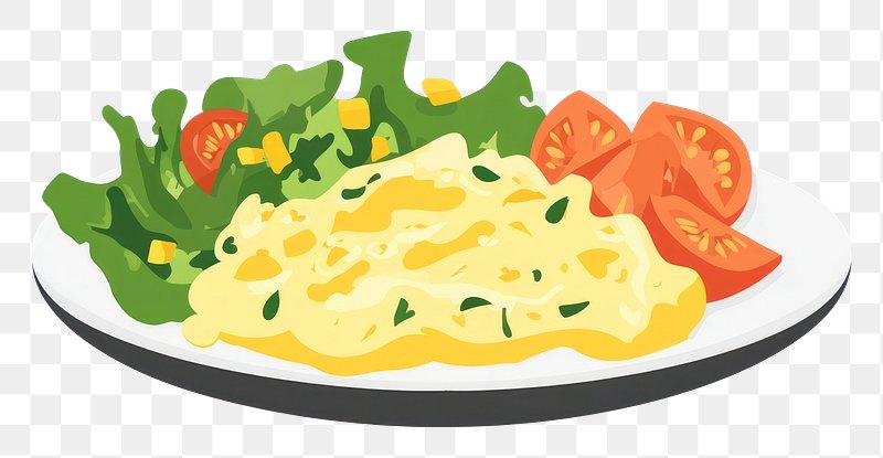 PNG Scrambled egg in a plate with salad illustration omelette food. https://www.rawpixel.com/image/16890746/png-scrambled-egg-plate-with-salad-illustration-omelette-foodView license