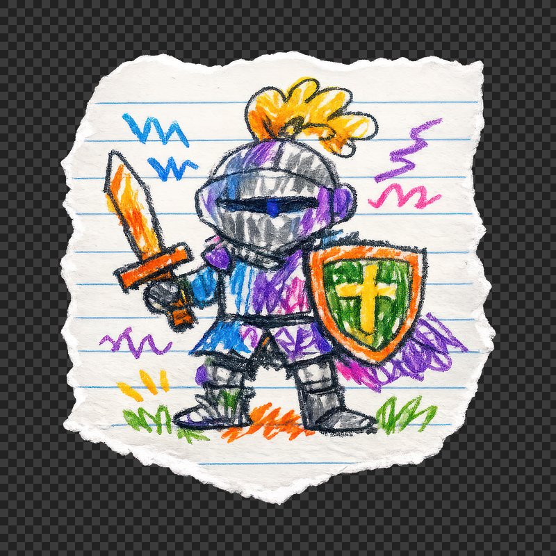 PNG Colorful child-drawn knight illustration. https://www.rawpixel.com/image/25609258/png-colorful-child-drawn-knight-illustrationView license