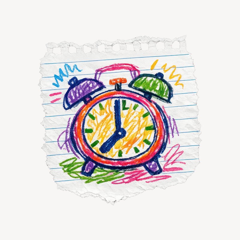 Colorful crayon alarm clock illustration. https://www.rawpixel.com/image/25689937/colorful-crayon-alarm-clock-illustrationView license