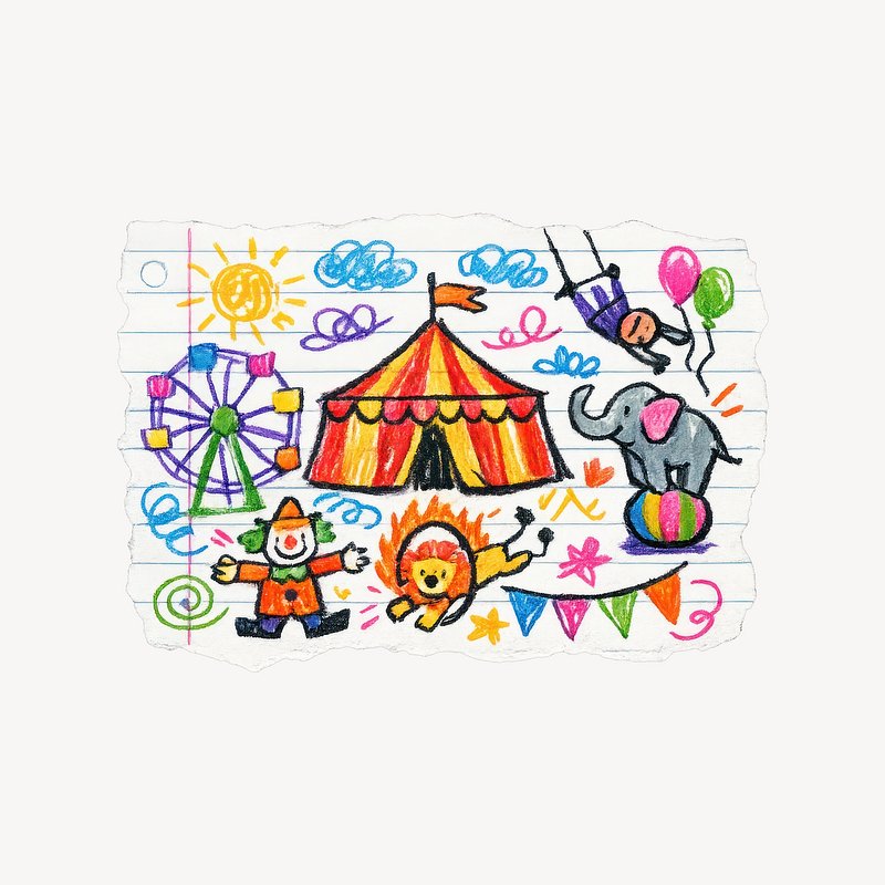 Colorful circus doodle illustration https://www.rawpixel.com/image/25690324/colorful-circus-doodle-illustrationView license