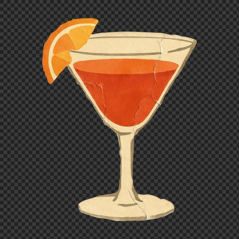 PNG Vintage cocktail with orange slice. https://www.rawpixel.com/image/17887318/png-vintage-cocktail-with-orange-sliceView license