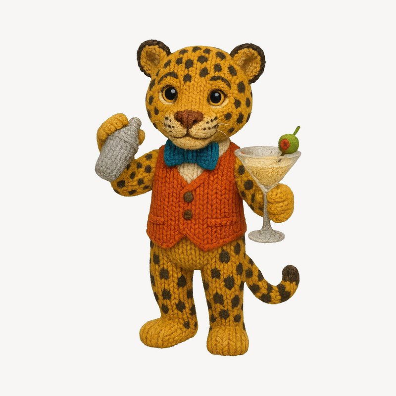 Knitted leopard bartender illustration. https://www.rawpixel.com/image/24659166/knitted-leopard-bartender-illustrationView license