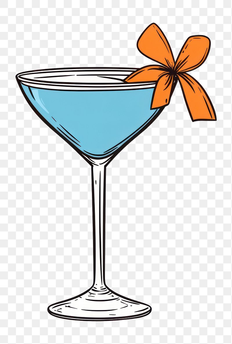 PNG A clicking blue Hawaii cocktail glass with orange ribbon illustration beverage martini. https://www.rawpixel.com/image/16923917/png-cartoon-cuteView license