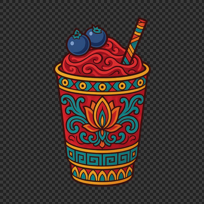 PNG Colorful ornate smoothie cup https://www.rawpixel.com/image/23938682/png-colorful-ornate-smoothie-cupView license