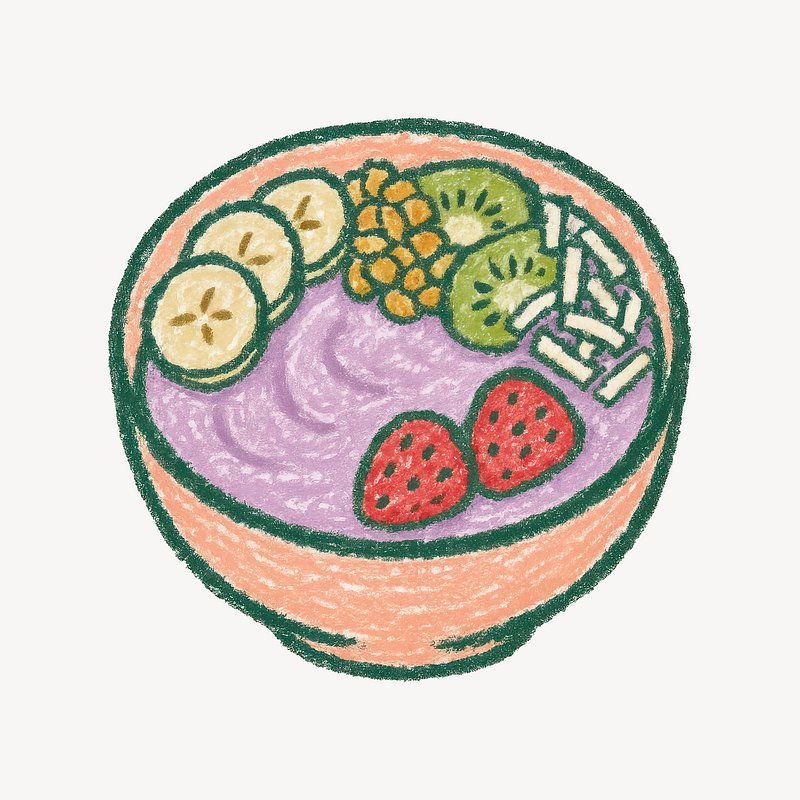 Colorful fruity smoothie bowl illustration. https://www.rawpixel.com/image/21432645/colorful-fruity-smoothie-bowl-illustrationView license