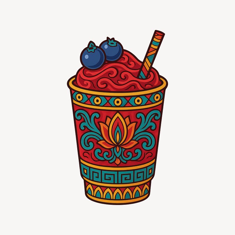 Colorful ornate smoothie cup https://www.rawpixel.com/image/24080977/colorful-ornate-smoothie-cupView license