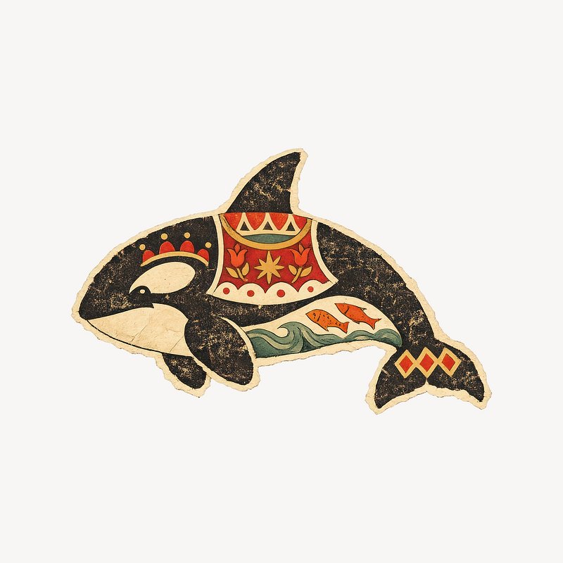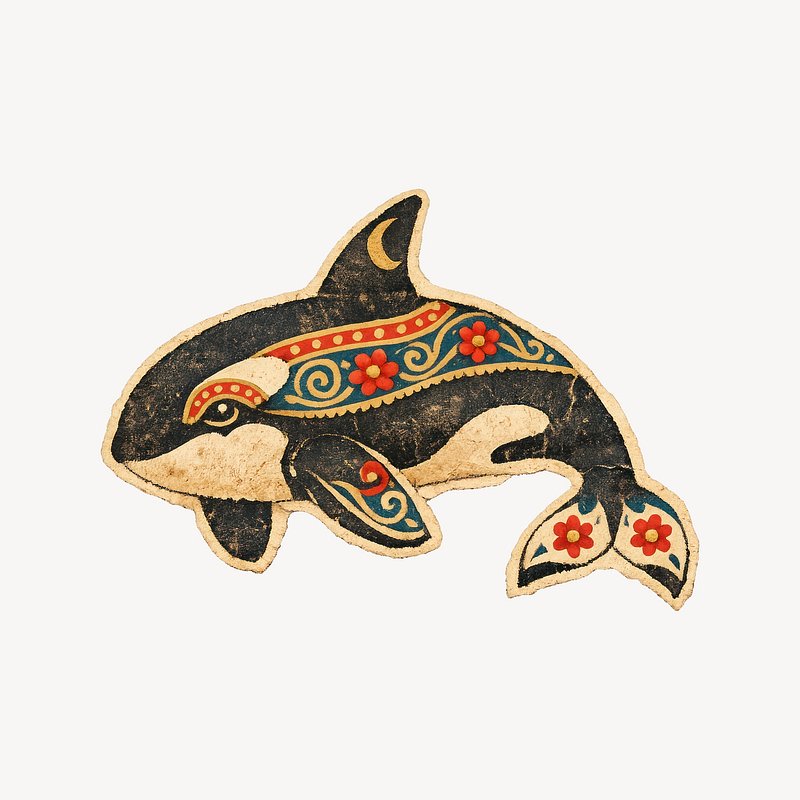 Orca illustration with tribal patterns. https://www.rawpixel.com/image/25537096/orca-illustration-with-tribal-patternsView license