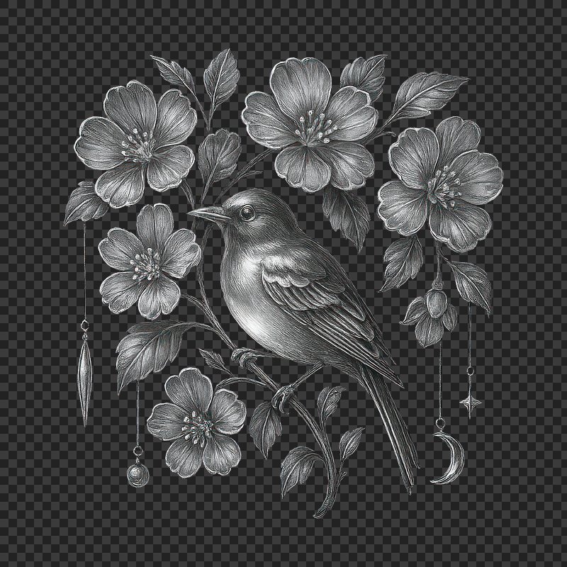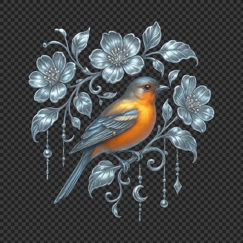 PNG Elegant bird with floral accents. https://www.rawpixel.com/image/23593834/png-elegant-bird-with-floral-accentsView license
