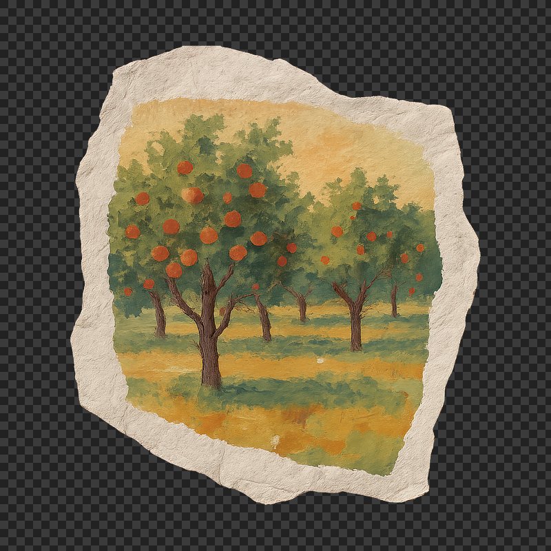 PNG Rustic orchard painting on paper. https://www.rawpixel.com/image/24120254/png-rustic-orchard-painting-paperView license