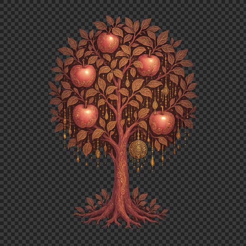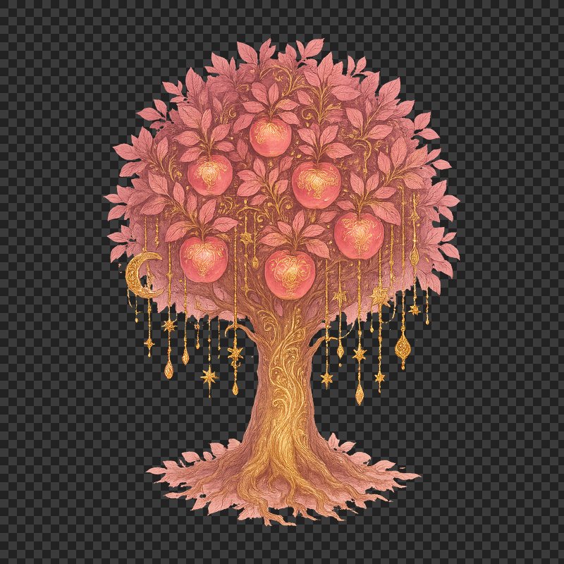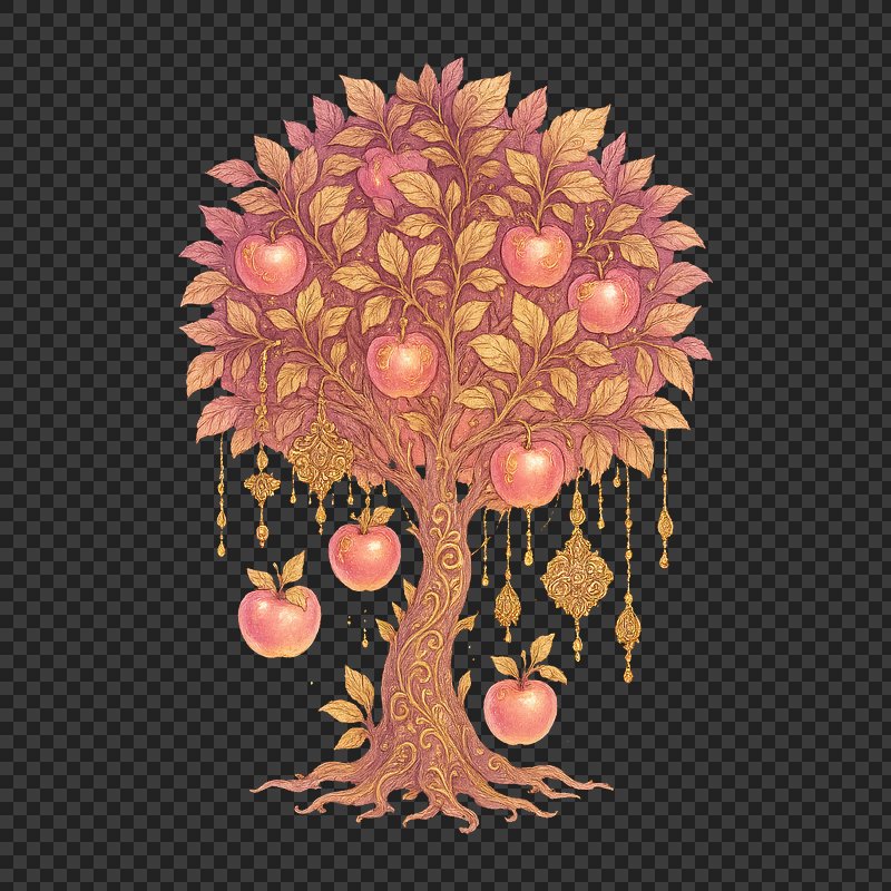 PNG Ornate tree with golden apples. https://www.rawpixel.com/image/23993510/png-ornate-tree-with-golden-applesView license