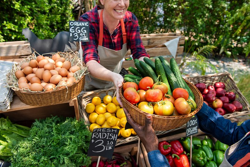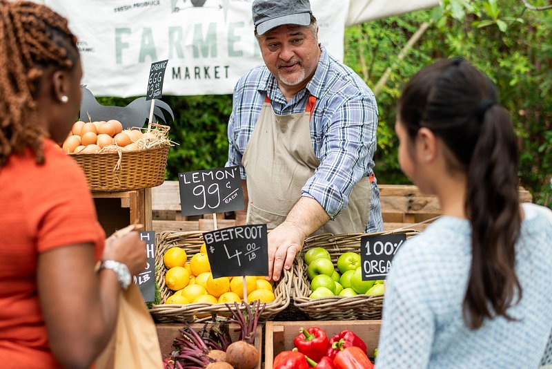 Vibrant farmers market produce exchange. https://www.rawpixel.com/image/26013002/vibrant-farmers-market-produce-exchangeView license