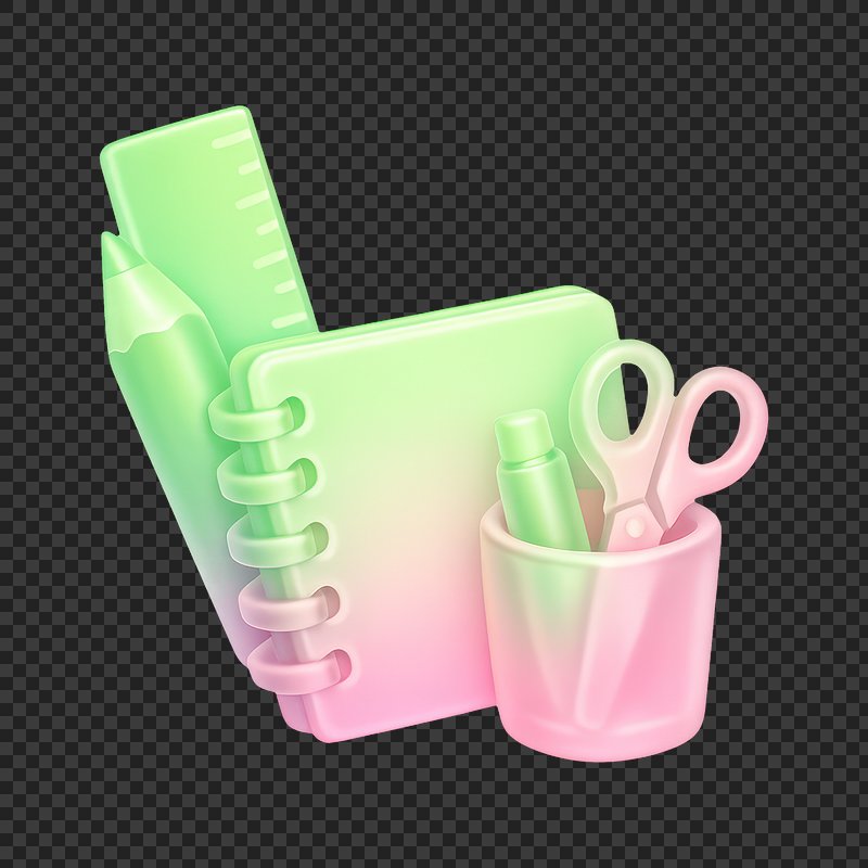 PNG Colorful stationery 3D illustration https://www.rawpixel.com/image/25287007/png-colorful-stationery-illustrationView license