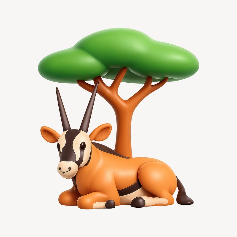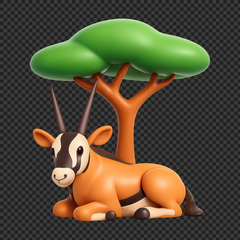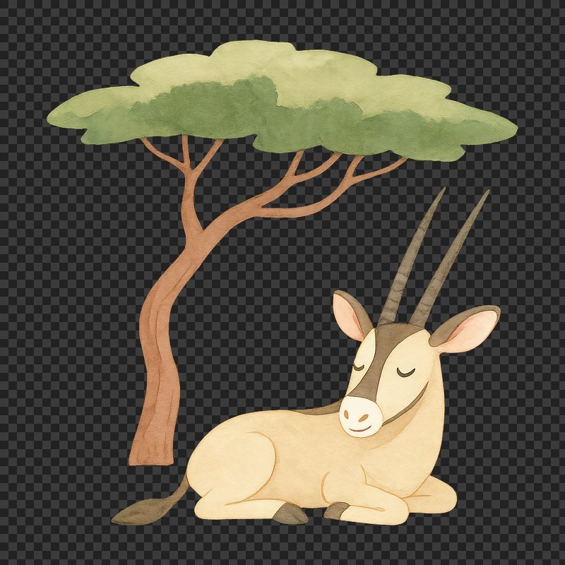 PNG Playful oryx resting under tree. https://www.rawpixel.com/image/19523039/png-playful-oryx-resting-under-treeView license
