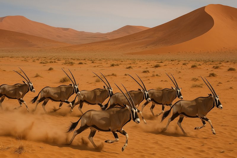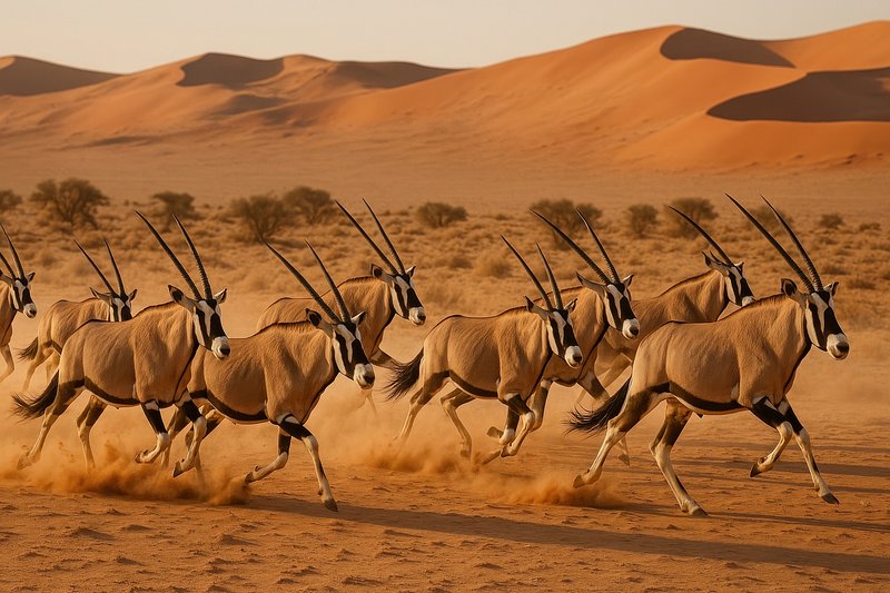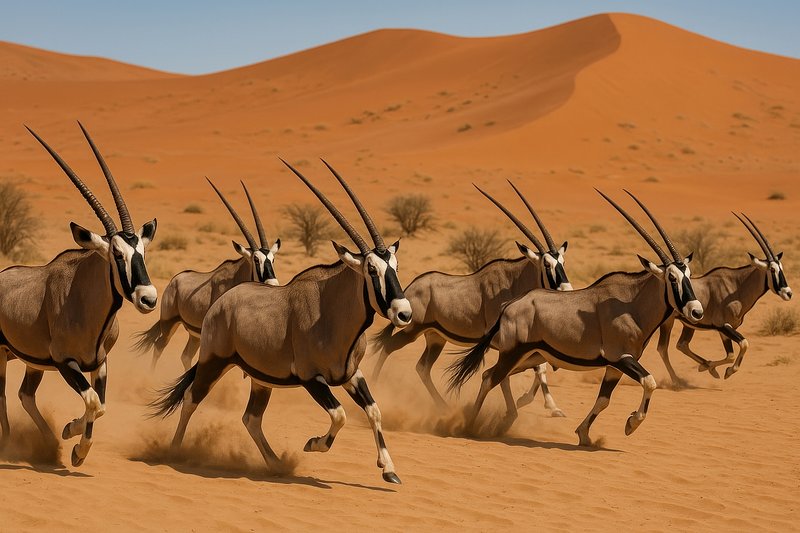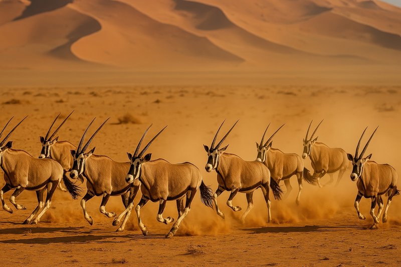 Oryx herd running desert landscape. https://www.rawpixel.com/image/17296085/oryx-herd-running-desert-landscapeView license
