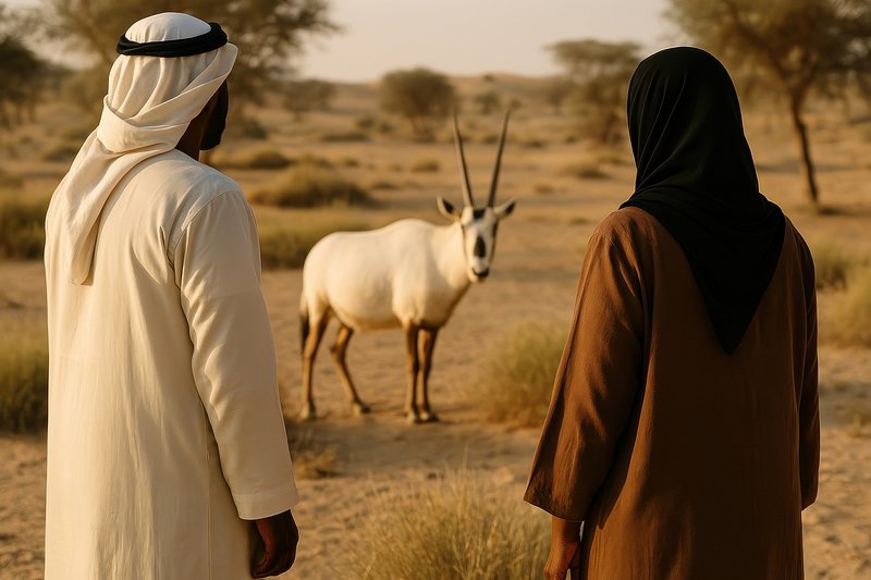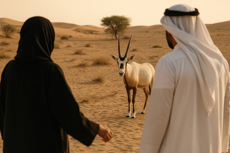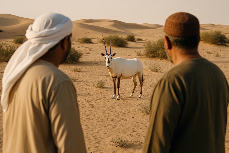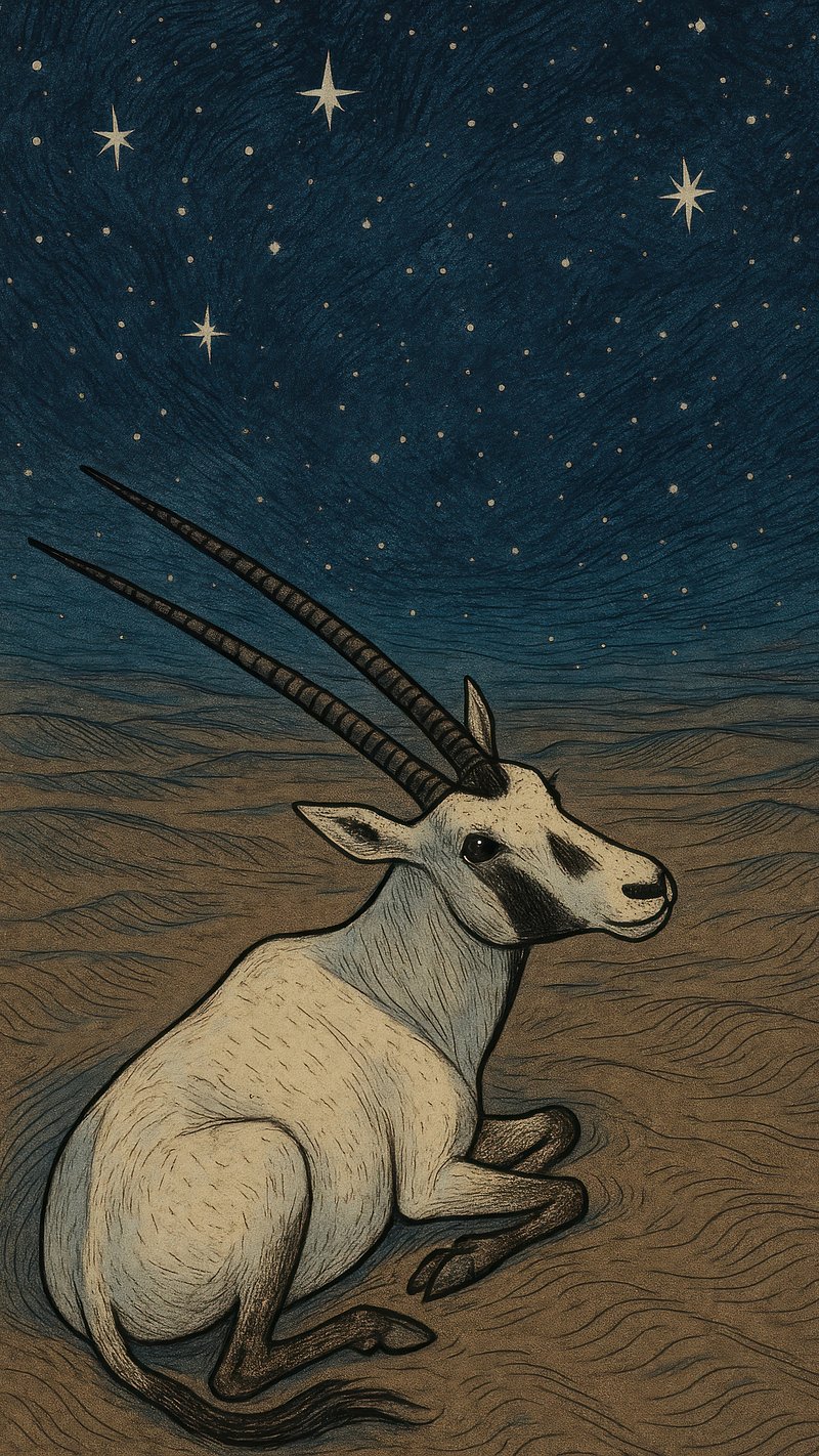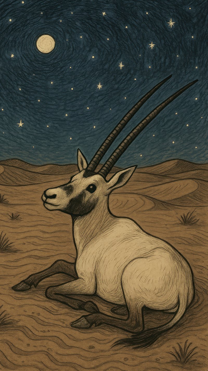 Desert encounter with Arabian oryx. https://www.rawpixel.com/image/17491027/desert-encounter-with-arabian-oryxView license