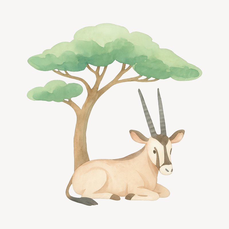 Watercolor antelope illustration for children. https://www.rawpixel.com/image/19158276/watercolor-antelope-illustration-for-childrenView license