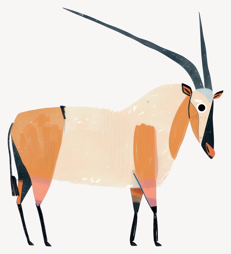 Cute oryx antelope, wild animal digital art illustration https://www.rawpixel.com/image/14609280/cute-oryx-antelope-wild-animal-digital-art-illustrationView license