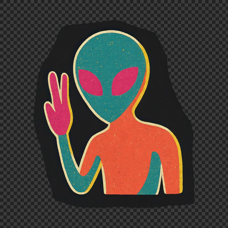 PNG Colorful alien peace sign https://www.rawpixel.com/image/24503948/png-colorful-alien-peace-signView license