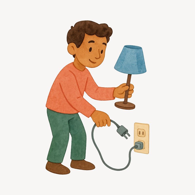 Cartoon boy plugging lamp illustration. https://www.rawpixel.com/image/20674411/cartoon-boy-plugging-lamp-illustrationView license