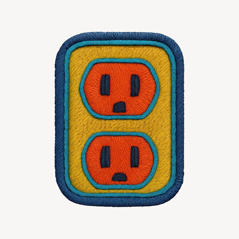 Colorful embroidered electrical outlet illustration. https://www.rawpixel.com/image/22108736/colorful-embroidered-electrical-outlet-illustrationView license