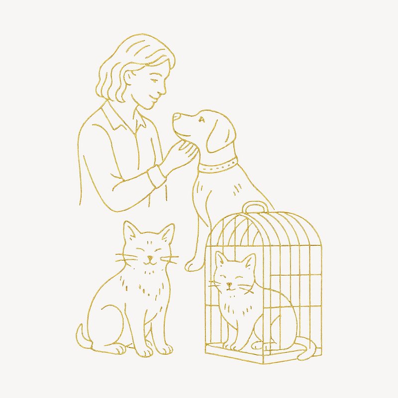 Illustration of pets and owner. https://www.rawpixel.com/image/24572664/illustration-pets-and-ownerView license