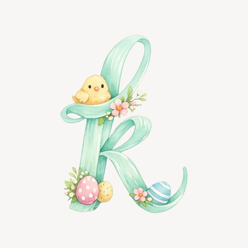 Easter-themed letter K illustration. https://www.rawpixel.com/image/25398972/easter-themed-letter-illustrationView license