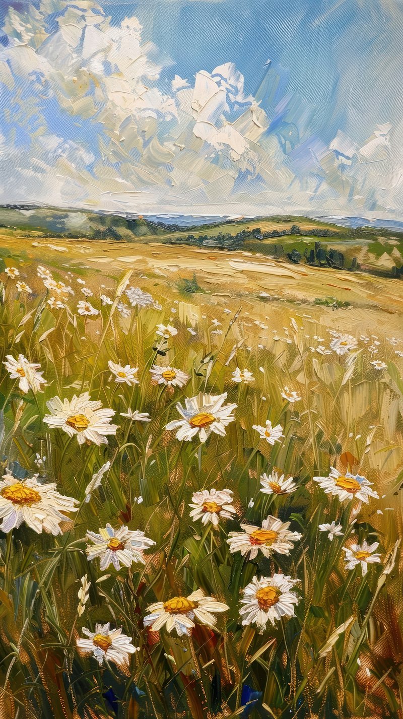 Field of daisy landscape impressionist painting. https://www.rawpixel.com/image/17241967/field-daisy-landscape-impressionist-painting View license