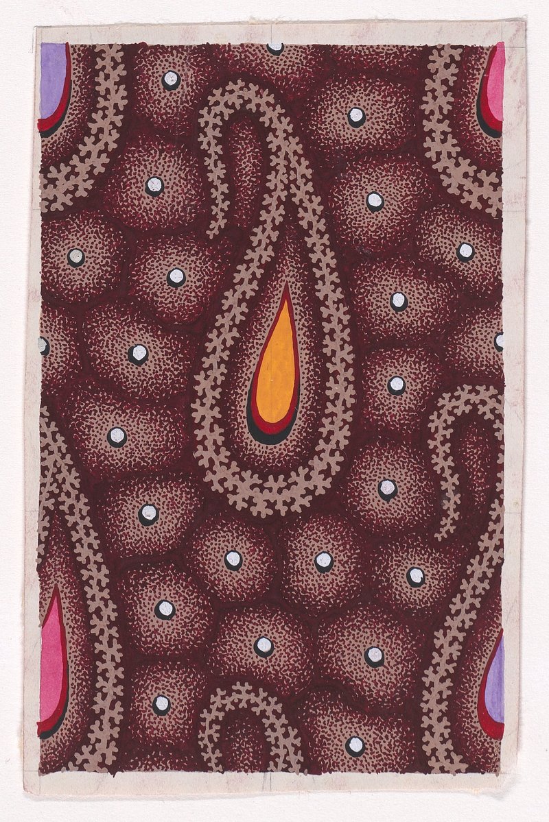 Textile Design with Alternating Rows of Paisley Motifs Outlined with Branches and Decorated with a Teardrop Shape over an… https://www.rawpixel.com/image/8031645/photo-image-paper-fabric-lightFree Image from public domain license