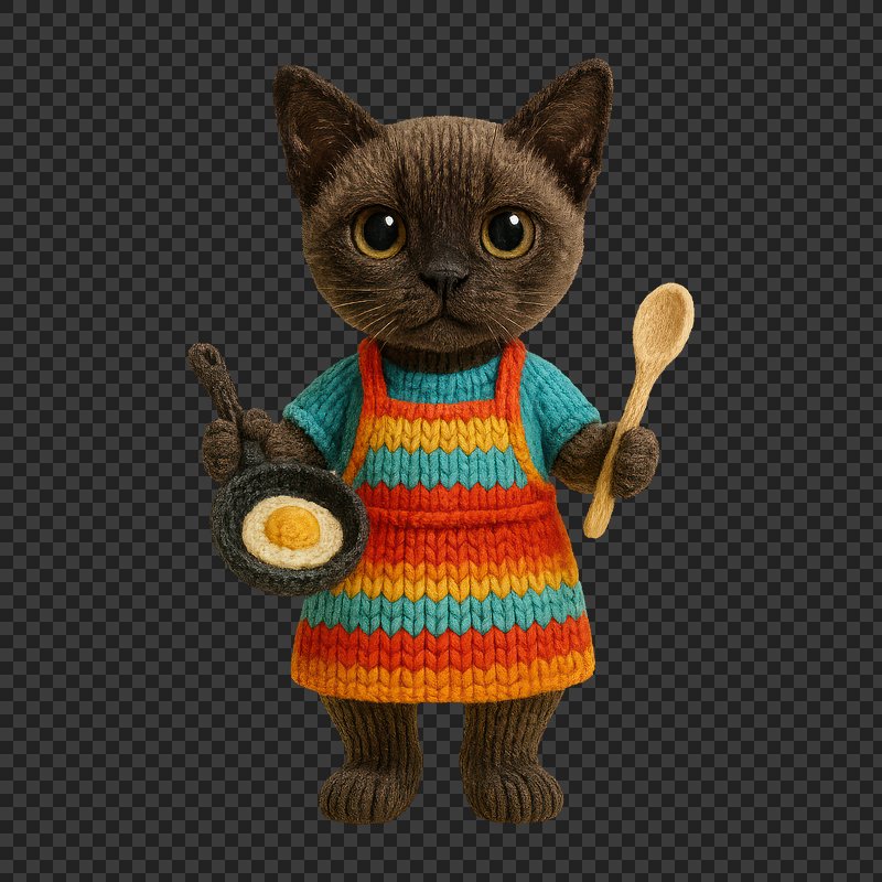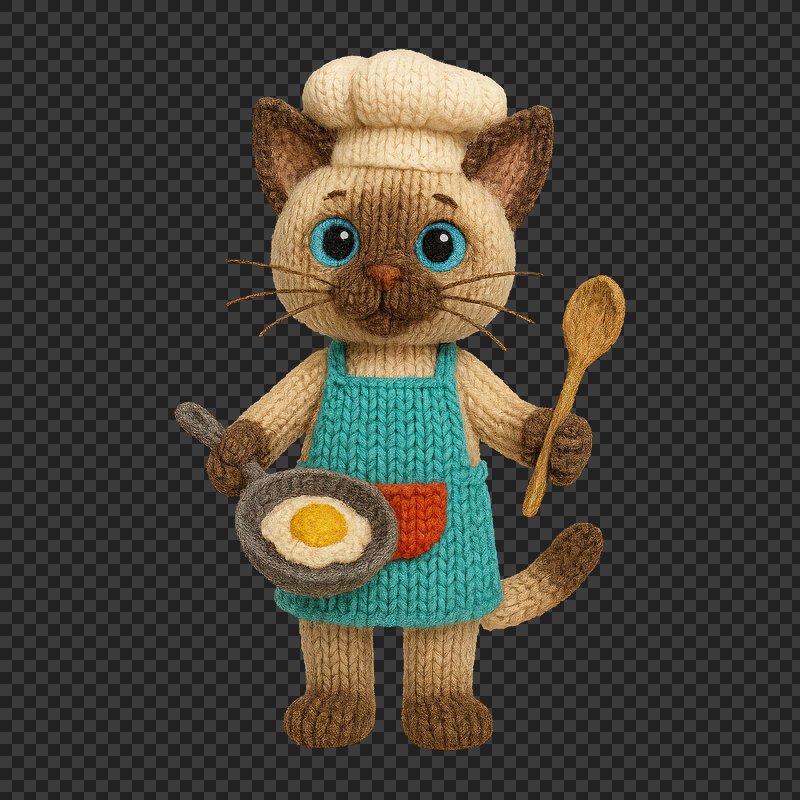 PNG Knitted cat chef character https://www.rawpixel.com/image/24479347/png-knitted-cat-chef-characterView license