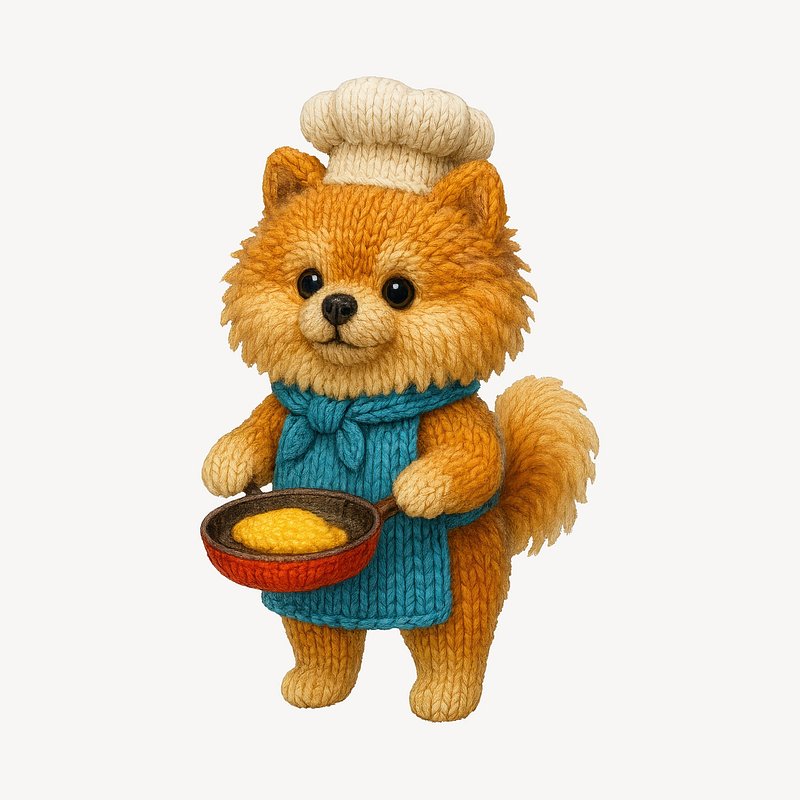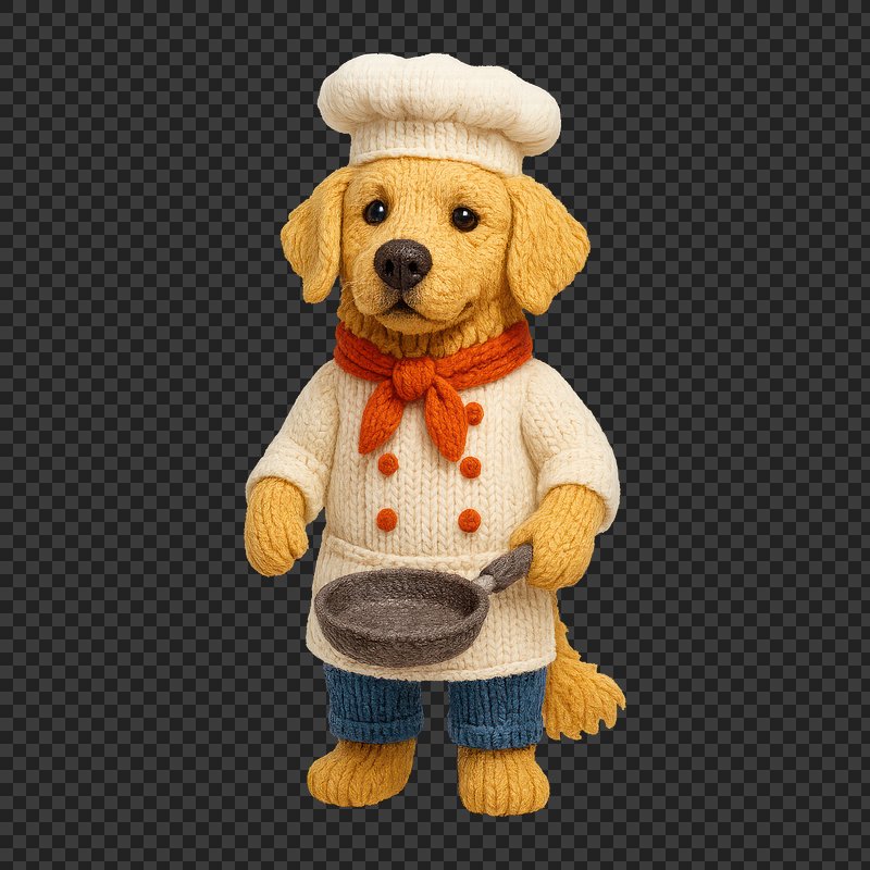 PNG Adorable knitted dog chef https://www.rawpixel.com/image/24478704/png-adorable-knitted-dog-chefView license