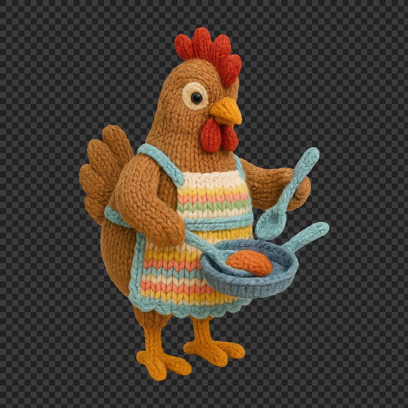 PNG Knitted chicken cooking delight. https://www.rawpixel.com/image/24480023/png-knitted-chicken-cooking-delightView license