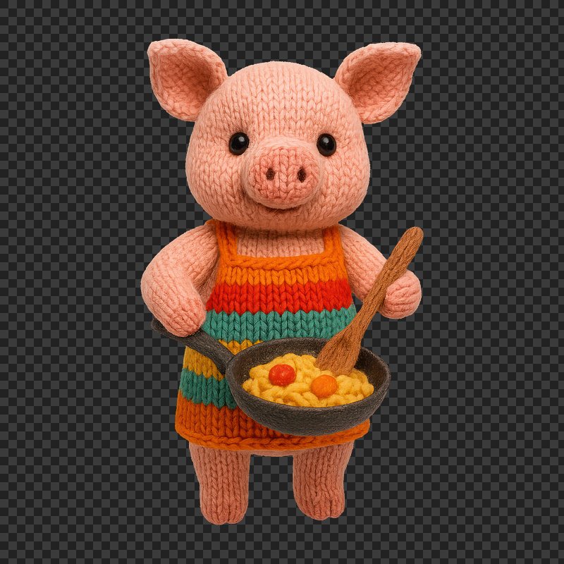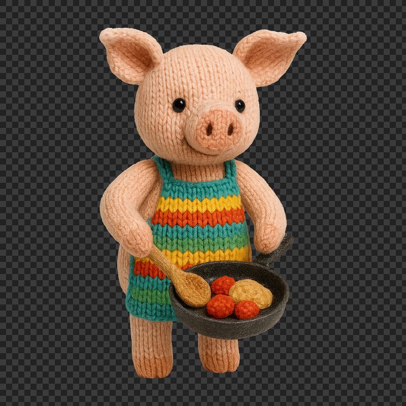 PNG Knitted pig chef cooking delight. https://www.rawpixel.com/image/24524703/png-knitted-pig-chef-cooking-delightView license