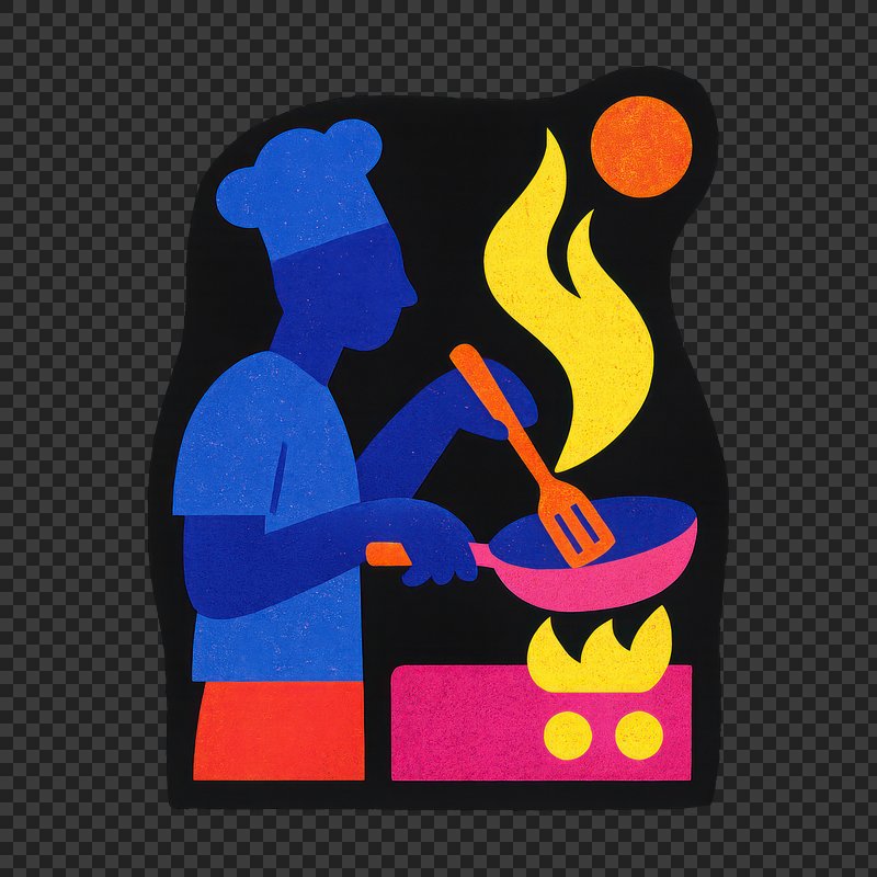 PNG Colorful chef cooking illustration https://www.rawpixel.com/image/24543888/png-colorful-chef-cooking-illustrationView license