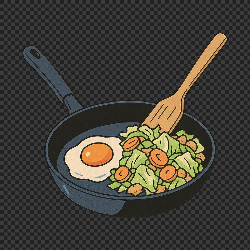 PNG Fried egg with vegetable stir-fry. https://www.rawpixel.com/image/24644028/png-fried-egg-with-vegetable-stir-fryView license