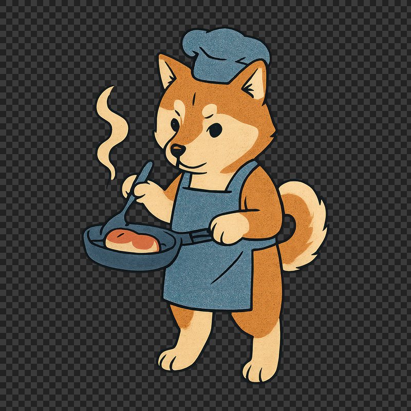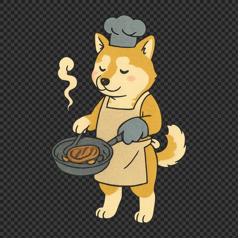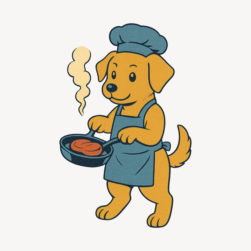 Cartoon dog chef cooking https://www.rawpixel.com/image/24718542/cartoon-dog-chef-cookingView license