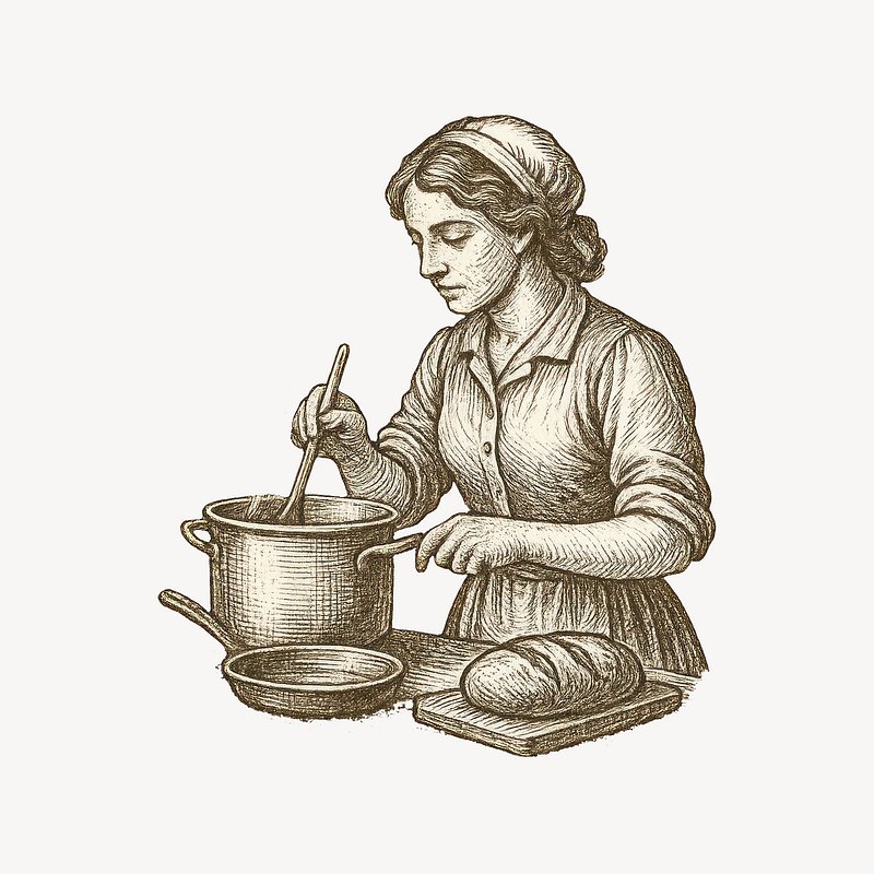Vintage cooking woman illustration https://www.rawpixel.com/image/24348263/vintage-cooking-woman-illustrationView license