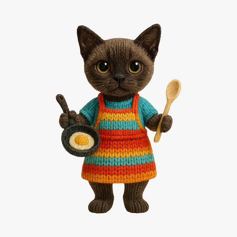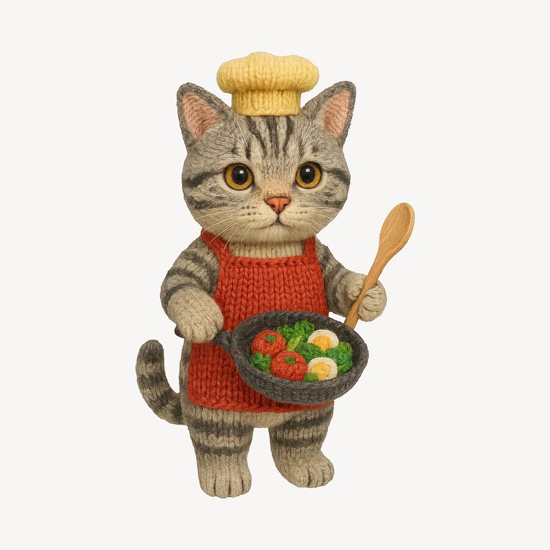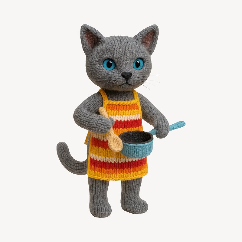 Cute knitted cat chef cooking https://www.rawpixel.com/image/24534001/cute-knitted-cat-chef-cookingView license