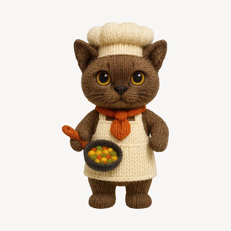 Cute knitted cat chef toy https://www.rawpixel.com/image/24605396/cute-knitted-cat-chef-toyView license