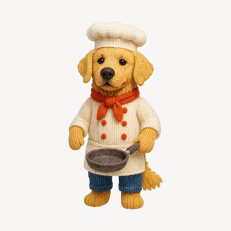 Adorable knitted dog chef https://www.rawpixel.com/image/24608850/adorable-knitted-dog-chefView license