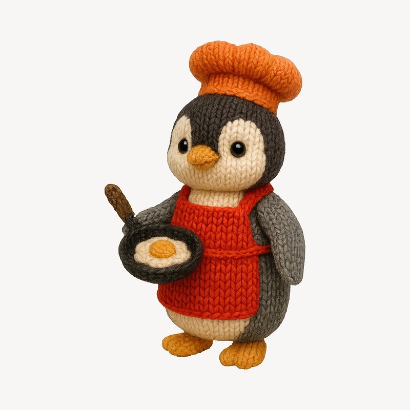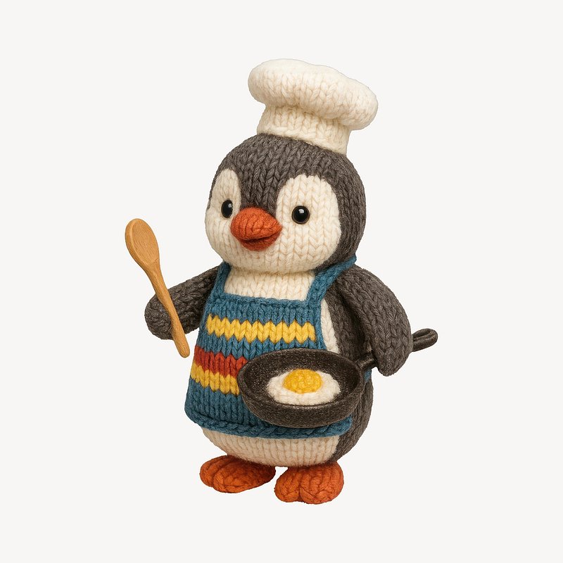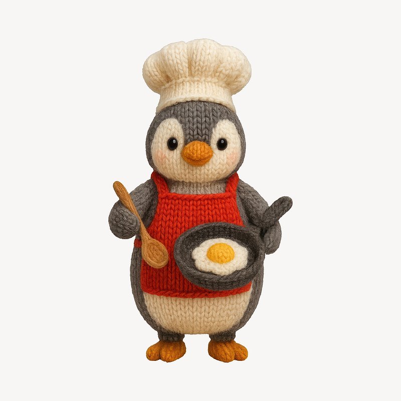 Knitted penguin chef cooking https://www.rawpixel.com/image/24606533/knitted-penguin-chef-cookingView license