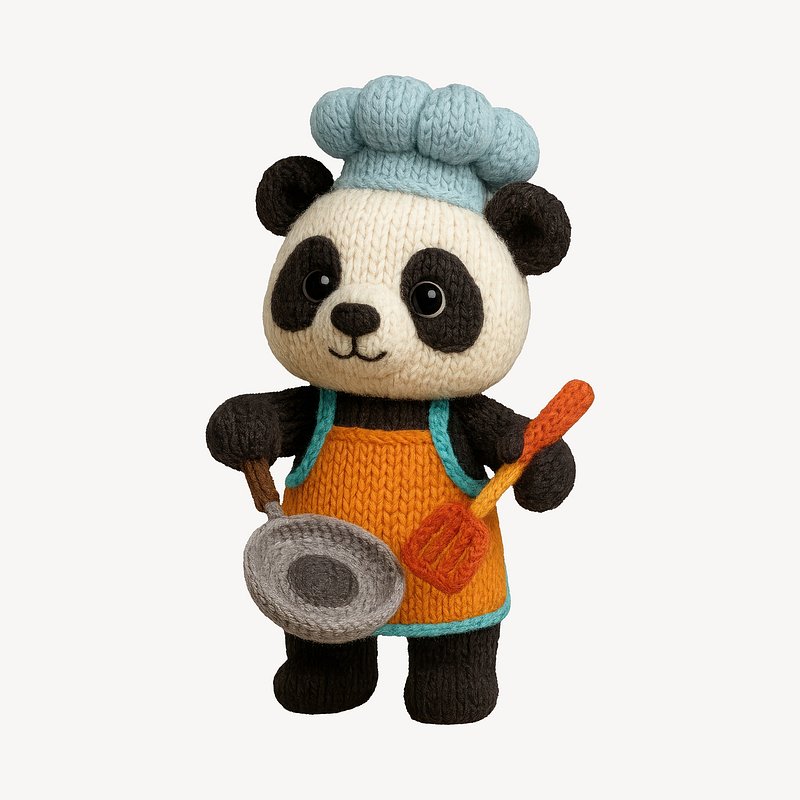 Cute knitted panda chef illustration. https://www.rawpixel.com/image/24605892/cute-knitted-panda-chef-illustrationView license
