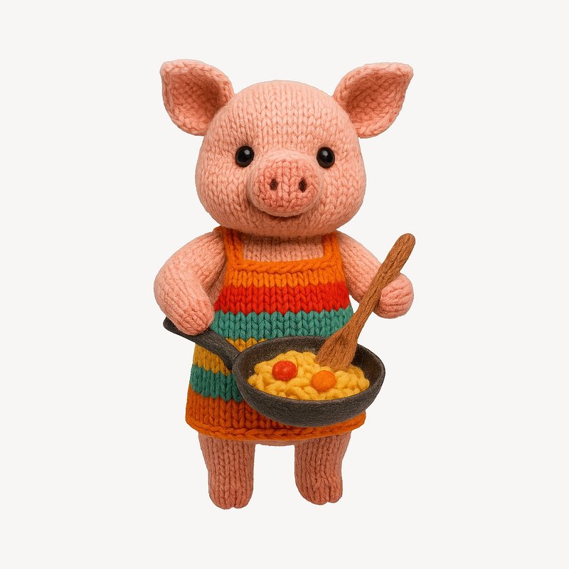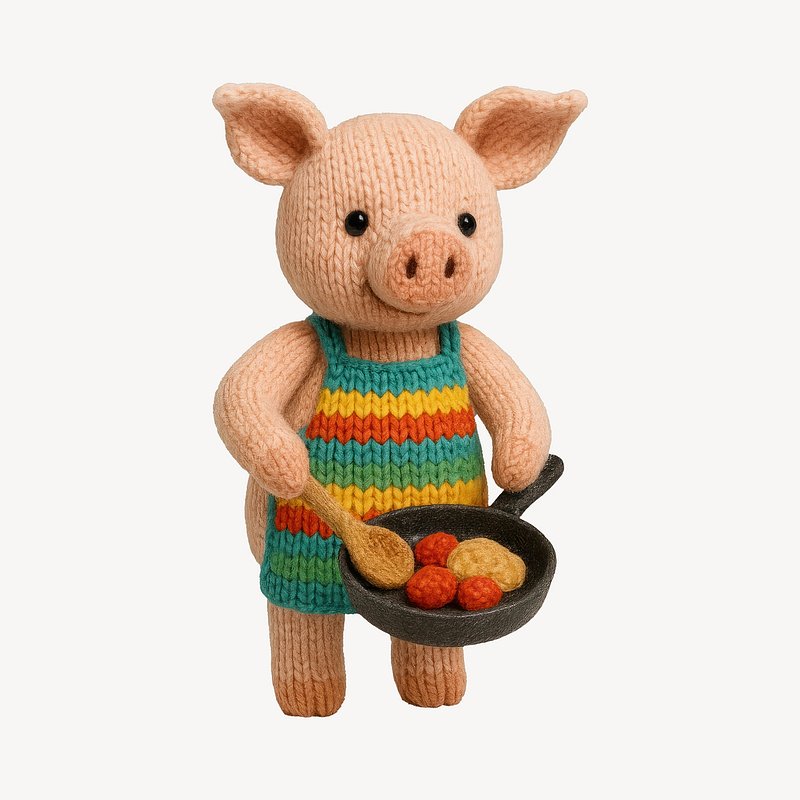 Knitted pig chef cooking delight. https://www.rawpixel.com/image/24604199/knitted-pig-chef-cooking-delightView license